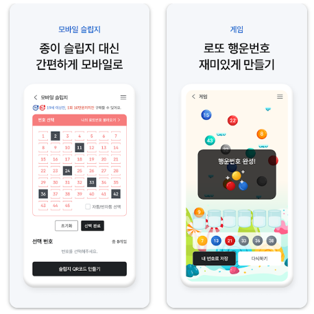 | 모바일 슬립지 | 앱에서 미리 번호를 선택해 QR로 저장 | 판매점에서 제시 후 구매 |